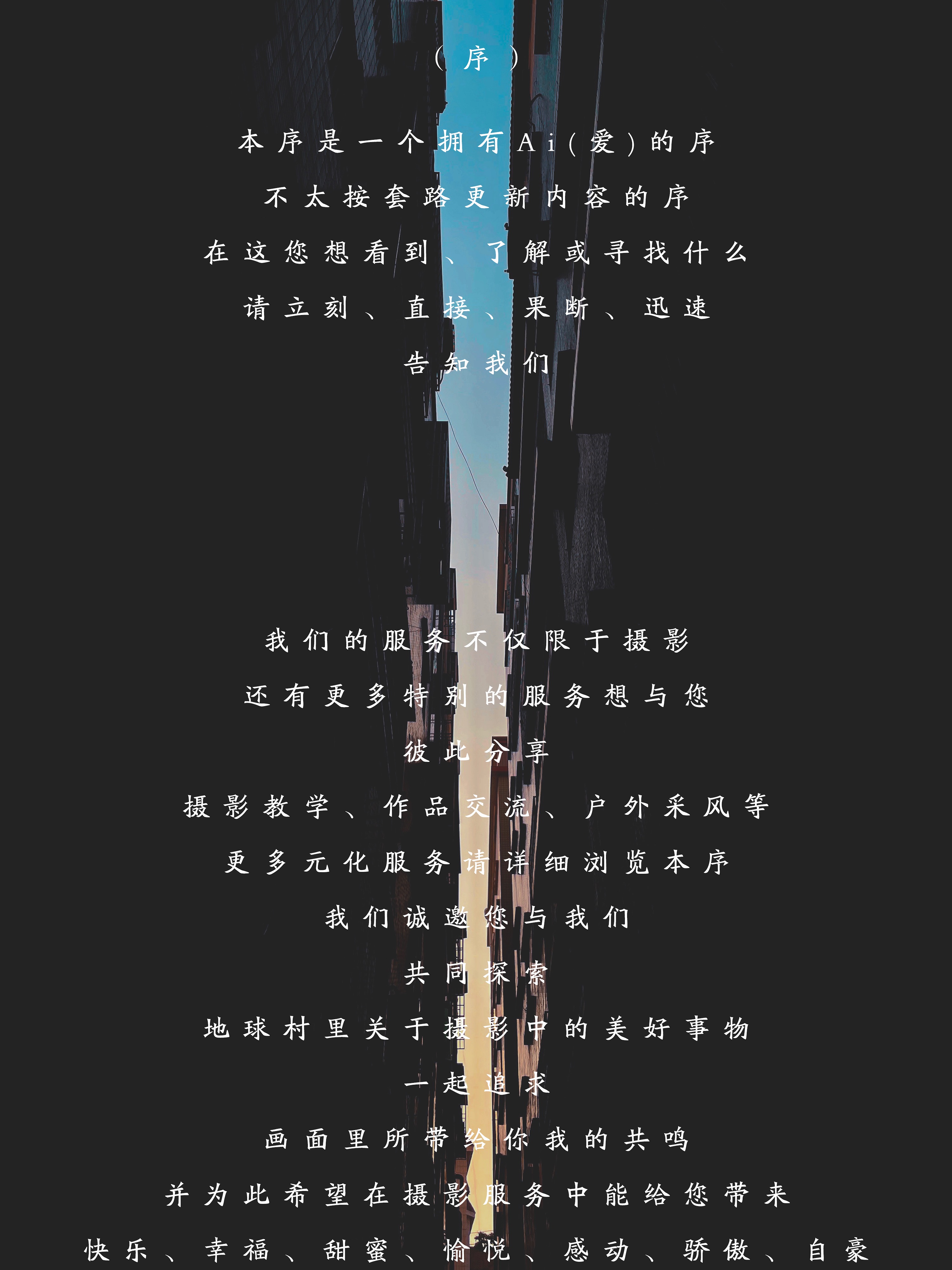 拍摄有温度的照片,记录平凡生活中的美好。每一张照片,都是时光的标本;每一次快门,都是一瞬间的精彩。为你停住时光的脚步,为你扑捉霎那间的极致。一路上有我,伴随着你人生旅途,记录美好的点滴。